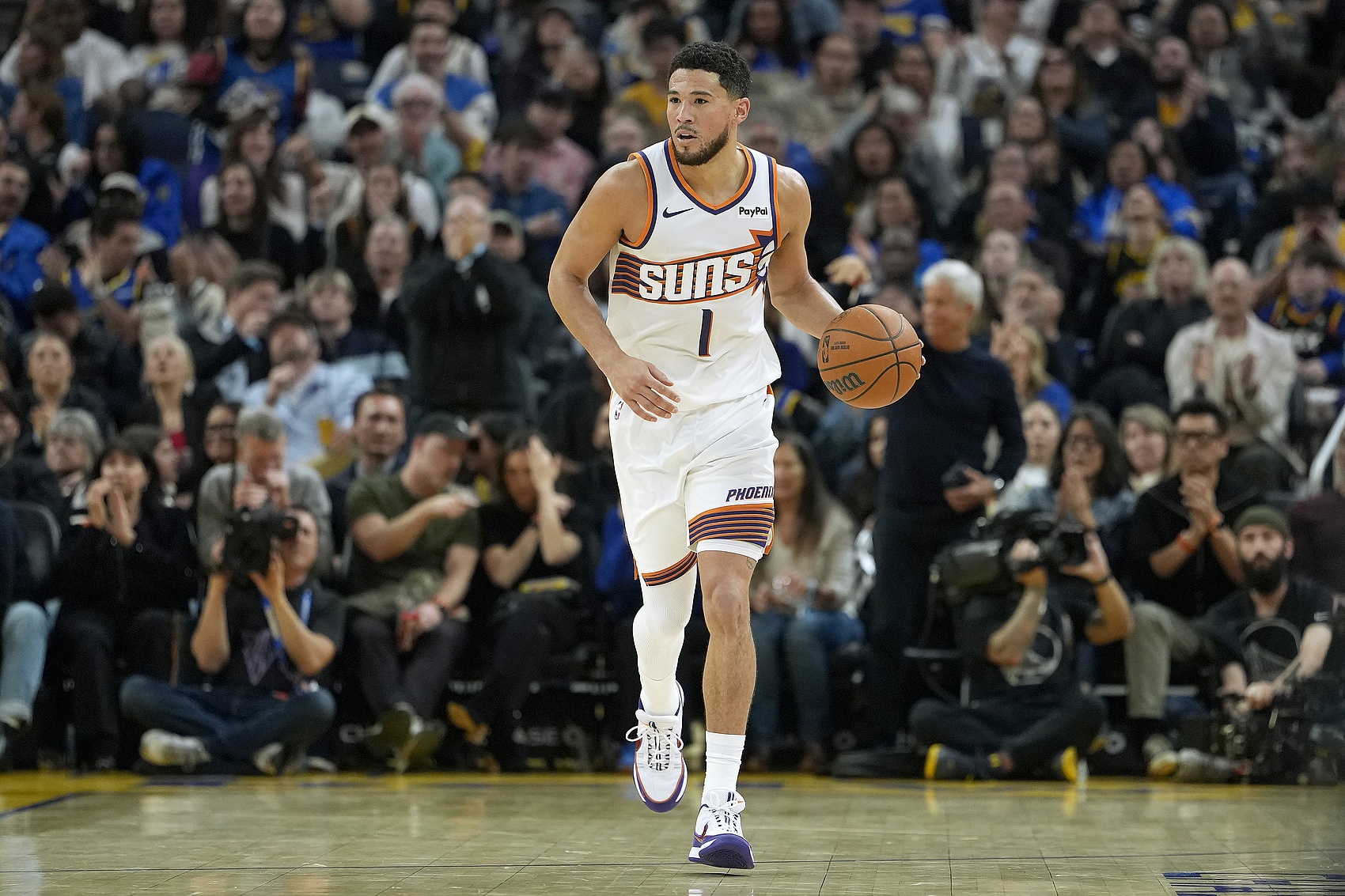 本场比赛,杜兰特出战38分30秒,21中9,其中三分12中2,罚球6中6,得到26分10板4助1帽。布克出战32分钟,21投9中,三分6投2中,罚球8罚7中,得到27分3助攻。