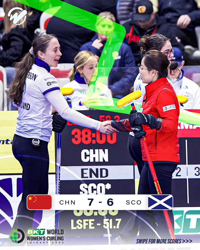 2026年女子冰壶世锦赛循环赛,中国队加局7-8惜败丹麦,目前1胜3负